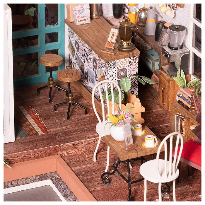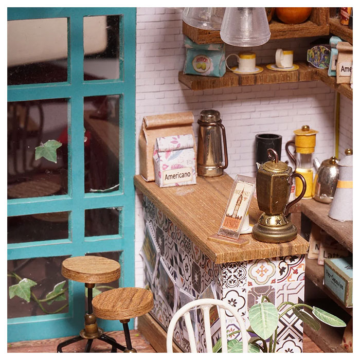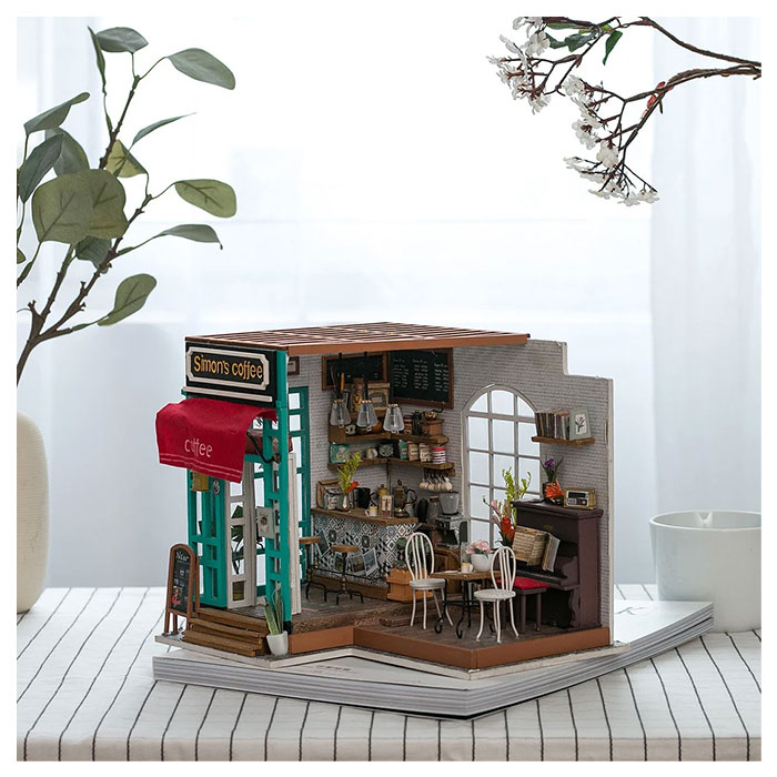 Build the most fashionable and detailed DIY miniature handmade houses in the world with DIY 3D Wooden Puzzle Simon’s Coffee Café! Glue all the parts together yourself, and enjoy the pleasure of creating a cute house. Sitting rooms, studios, studies and all, there are many designs in the DIY miniature house line to create your dream home. Overhead LED room lights requires two CR2032 lithium button cells not included.