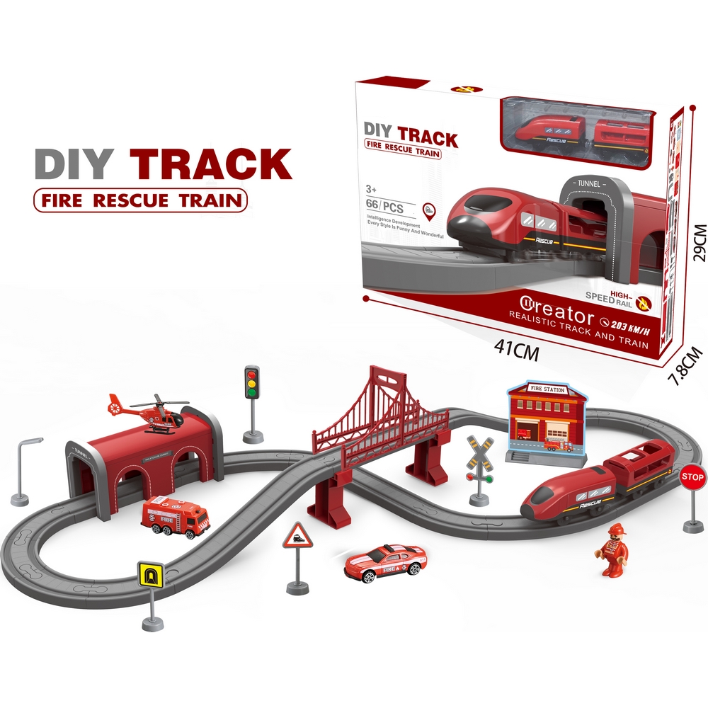 DIY Track Fire Rescue Train Set (66 Pieces)
