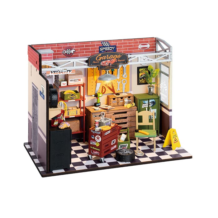 Unleash your inner mechanic with this captivating 3D wooden puzzle, showcasing a detailed garage workshop scene, complete with tools, vehicles, and a vibrant atmosphere of creativity and craftsmanship.