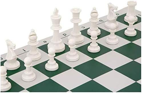 Introducing the Roll-Up Chess Set with Storage Tube and Shoulder Strap (17″) – a perfect blend of convenience, durability, and classic gameplay. Whether you’re a seasoned chess enthusiast or a beginner, this travel-friendly set is designed to enhance your chess experience wherever you go. The roll-up board, made from sturdy vinyl, ensures easy portability. Simply roll it up and slip it into the included carry tube with a convenient shoulder strap. Whether you’re heading to the park, a friend’s house, or a coffee shop, take your chess game with you effortlessly. Crafted to withstand years of play, this chess set is ideal for beginners and casual players. The vinyl board resists wear and tear, making it suitable for both indoor and outdoor use. The algebraic notation on the board ensures clarity during matches. The package includes 32 chess pieces – a full complement of 16 white and 16 black pieces.